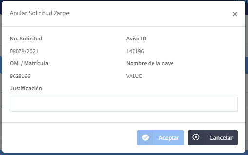 El sistema le abrirá una ventana para que ingrese una justificación de anulación.
