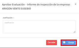 El sistema le abrirá una ventana para registrar la aclaración de la evaluación en el campo Justificación, todos los campos deben ser diligenciados.