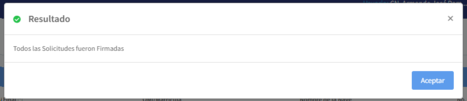El sistema le mostrara un mensaje de confirmación, indicando que las solicitudes fueron firmadas