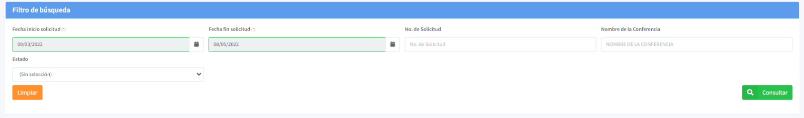Una vez seleccionados los criterios de búsqueda, de clic en el botón "Consultar”. Inmediatamente en la parte inferior de la pantalla, le aparecerán todos aquellos registros que cumplan con los parámetros de búsqueda asociados. Utilice el botón "Limpiar", para borrar los criterios de búsqueda seleccionados e iniciar otra consulta.