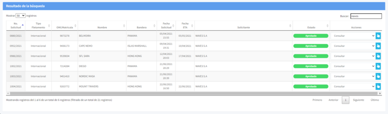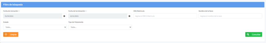 El módulo de Fletamento, del sistema de transporte Marítimo nacional e intencional, cuenta con unos parámetros que facilitan la búsqueda de solicitudes. Usted puede realizar la búsqueda por uno o mas criterios.