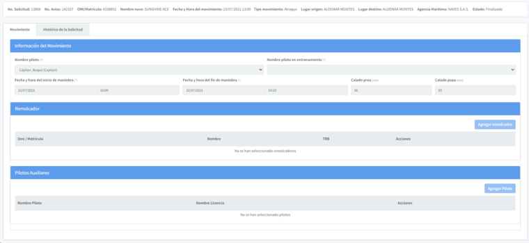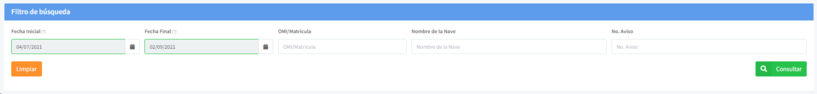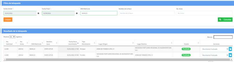 La opción Movimiento en puerto, del módulo Tráfico Internacional, Cuenta con unos parámetros que facilitan la búsqueda de solicitudes. Usted puede realizar la búsqueda por uno o mas criterios.