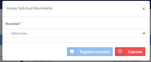 Se abrirá una ventana para el registro de la novedad. Seleccione la novedad del listado y de clic en el botón "Registrar Novedad".
