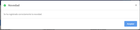 El sistema le mostrará un mensaje de confirmación, informando que se ha registrado correctamente la novedad.