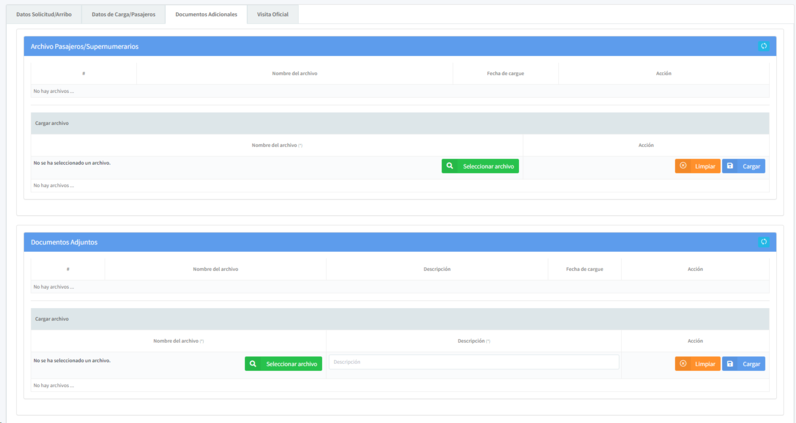 3. Documentos Adicionales: En la pestaña "Documentos Adicionales" seleccione los archivos correspondientes y de clic en el botón Cargar.