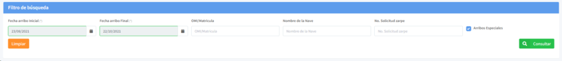 Para crear la V.O.A, realice la consulta de arribos especiales creados, dando clic en el cuadro de arribos especiales