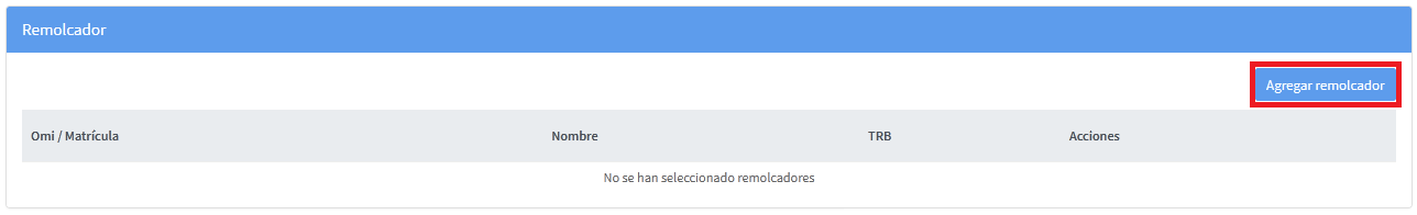 c. Remolcadores: Para agregar un nuevo remolcador, de clic en el botón "Agregar remolcador"