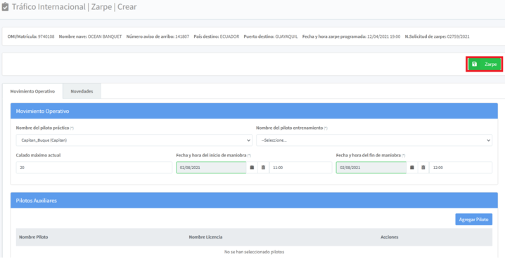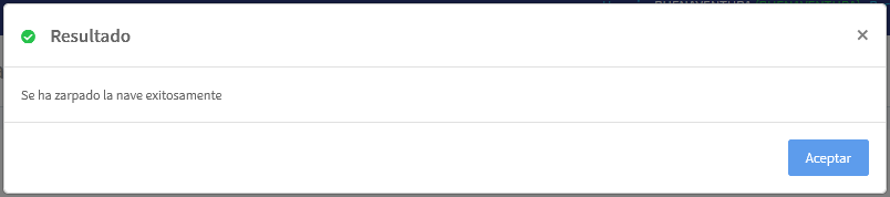 El sistema le mostrará un mensaje de confirmación indicando que se ha realizado el Zarpe de manera exitosa