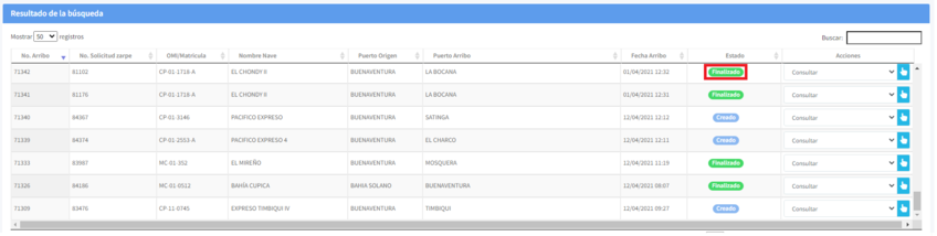 Cuando una se realiza una solicitud de Zarpe dentro de la jurisdicción, en el momento de realizar el trámite de arribo usted vera que en la opción administrar arribos este queda en estado "Finalizado" y no es necesario realizar el proceso de visita oficial de arribo.