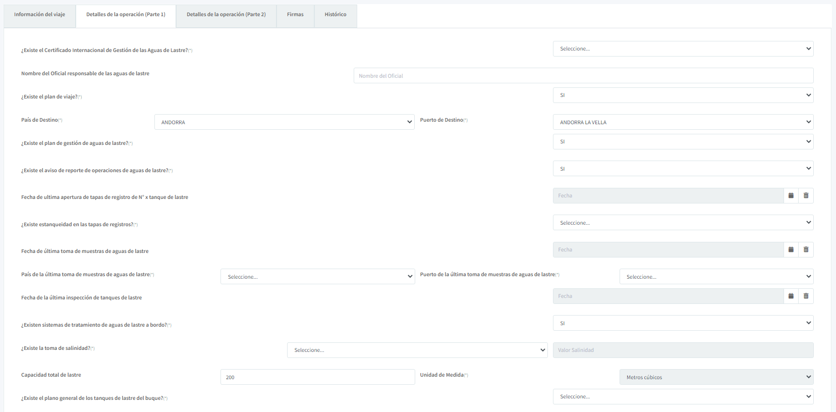 En la pestaña Detalle de la operación, encuentra la primera parte de la lista de chequeo de detalle de la operación. Registre toda la información solicitada