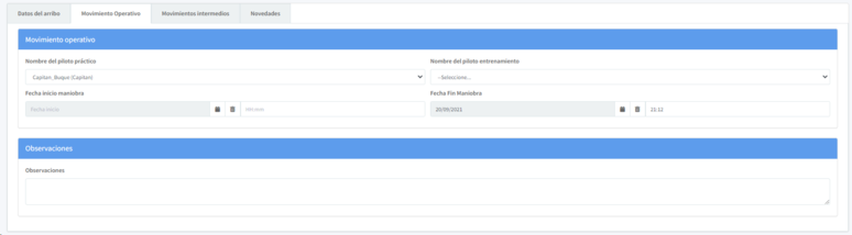 Datos de hora fecha en la que finaliza la maniobra de arribo