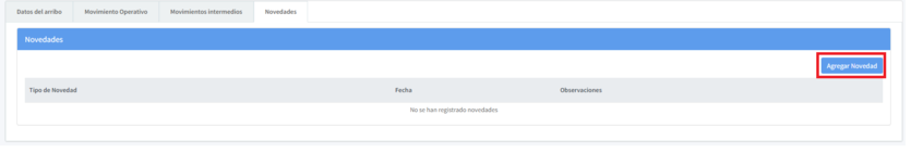 Esta opción esta disponible, para que usted pueda informar sobre alguna eventualidad ocurrida. Para agregar una novedad de clic en el botón "Agregar Novedad"