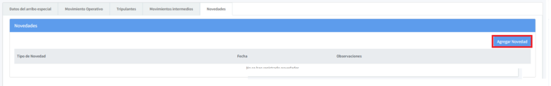 Esta opción esta disponible, para que usted pueda informar sobre alguna eventualidad ocurrida. Para agregar una novedad de clic en el botón "Agregar Novedad"