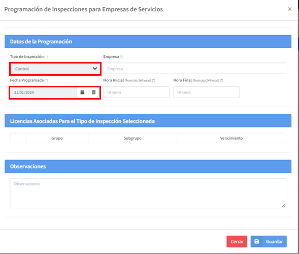 Nota: Para las programación de inspecciones extraordinarias, se programará y el gestor asignará directamente al inspector que realizará esta visita y esta no requiere aprobación de la empresa.