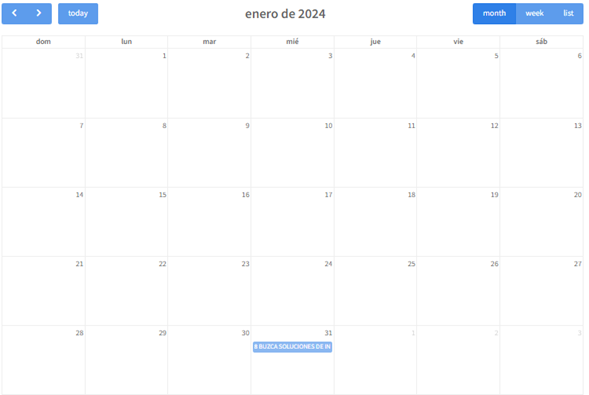 Seleccione la empresa, diríjase al calendario y ubica el día en que se realizará la inspección de seguimiento. Podrá acceder a la vista por Mes, Semana o lista.