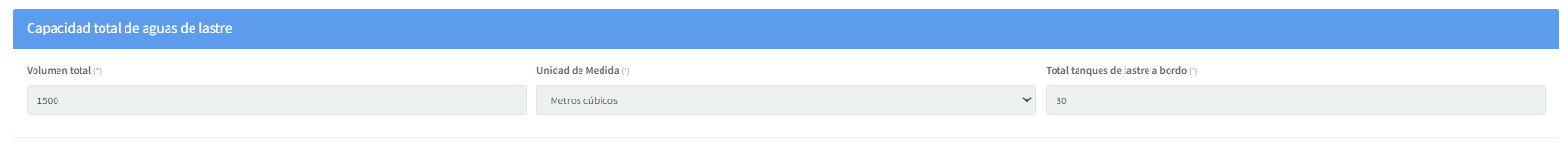 En la pestaña Uso y capacidad de Agua de Lastre, se encuentra la siguiente información