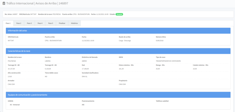 El sistema le abrirá el aviso de arribo completo. Esta información es solo de consulta, no podrá ser modificada.