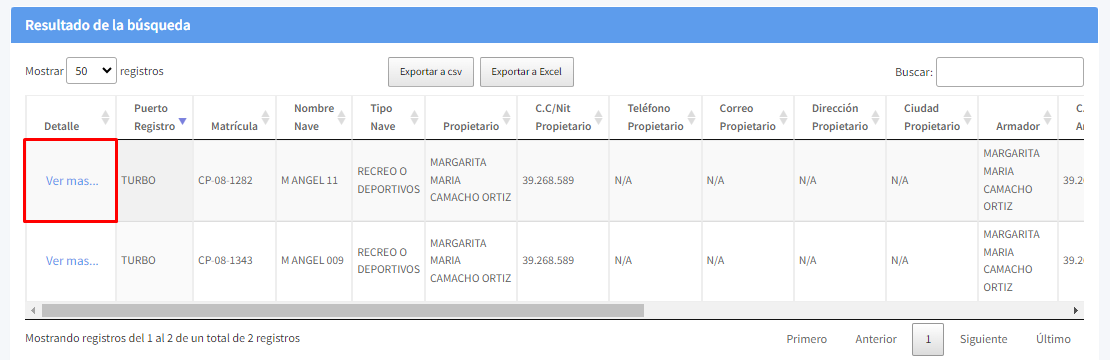 Una vez haya detectado el registro a consultar, diríjase a la columna Detalle, y seleccione la opción "Ver más...".