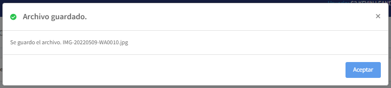 El sistema le mostrará un mensaje de confirmación, indicando que el archivo ha sido adjuntado correctamente.