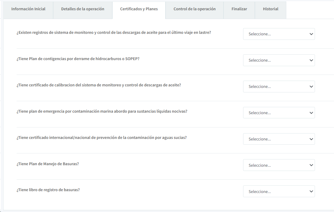 En esta pestaña usted encontrara varios enunciados y frente a cada uno las opciones de respuesta SI/NO/NO APLICA. Seleccione la opción según corresponda
