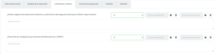 - En todos los casos en donde la selección sea la opción SI, se habilitara el campo para el registro de observaciones