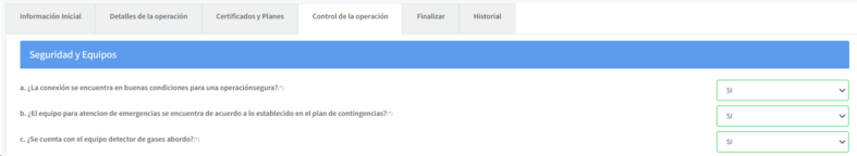 2. Antes de la operación: En este bloque encontrara un listado de 21 preguntas correspondientes al control antes de la operación. Tenga en cuenta la siguiente información: