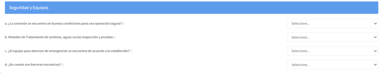 1. Seguridad y Equipos: En este bloque encontrara 4 preguntas (De a hasta d). Frente a cada pregunta, las opciones de respuesta SI/NO/NO APLICA. Seleccione según corresponda.