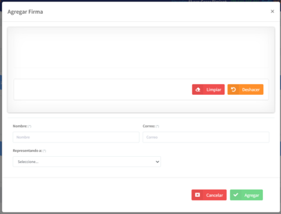 El sistema le mostrara la ventana para agregar las firmas correspondientes. Ingrese la rubrica en el panel de firmas y complete todos los campos teniendo en cuenta la siguiente información: