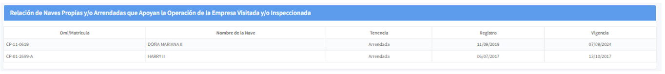 En esta sección encontrará el listado de las naves propias y/o arrendadas que apoyan la operación de y se encuentran registradas por la empresa o agencia. Es una información de sólo consulta.
