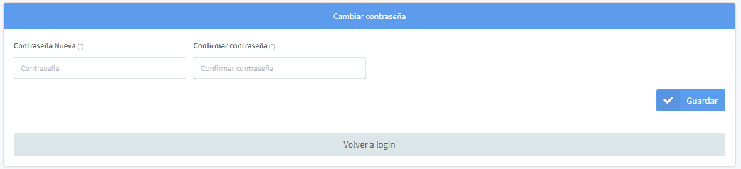 El link lo redireccionará al formulario de cambio de contraseña. Registre una nueva contraseña y de clic en el botón "Guardar"