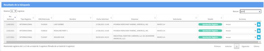 El módulo Registro, del sistema de transporte Marítimo nacional e intencional, cuenta con unos parámetros que facilitan la búsqueda de solicitudes. Usted puede realizar la búsqueda por uno o mas criterios.