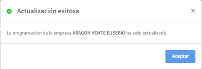 Una vez finalice de clic en el botón “Guardar”” que se encuentra en la parte inferior de la pantalla. El sistema le mostrará un mensaje de confirmación, indicando que se ha modificado de forma exitosa la programación.