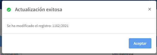 El sistema le mostrará un mensaje de confirmación, indicando que el registro ha sido aprobado.