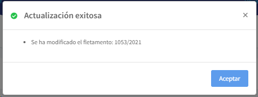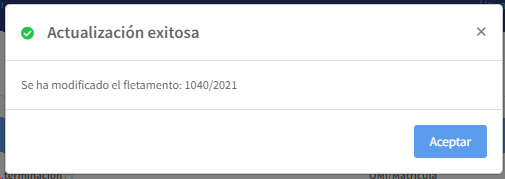 El sistema le mostrará un mensaje de confirmación, informando que el fletamento ha sido aprobado.