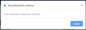 Al dar clic, el sistema le mostrará un mensaje de confirmación, informando que el fletamento ha sido aprobado.