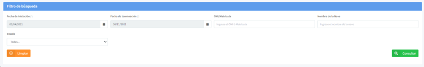 El módulo de permiso especial de cabotaje, del sistema de transporte Marítimo nacional e intencional, cuenta con unos parámetros que facilitan la búsqueda de solicitudes. Usted puede realizar la búsqueda por uno o mas criterios.