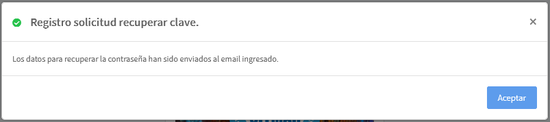 Una vez ingresada toda la información del formulario, de clic en el botón "Enviar Solicitud". El sistema le mostrará un mensaje de confirmación indicando que los datos para recuperar la contraseña fueron enviados al correo electrónico ingresado