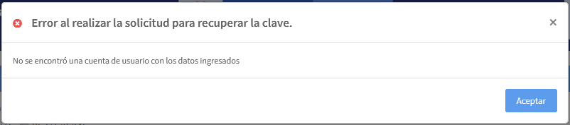 Tenga en cuenta: El sistema valida si el correo ingresado, corresponde al usuario. De no ser reconocido mostrará el siguiente mensaje de error.