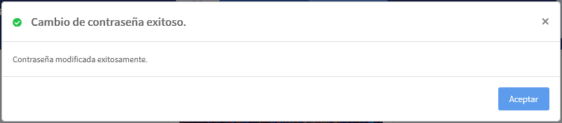 El sistema le mostrará un mensaje de confirmación indicando que la contraseña se cambio con éxito, y lo dejara en la ventana principal para el ingreso al sistema