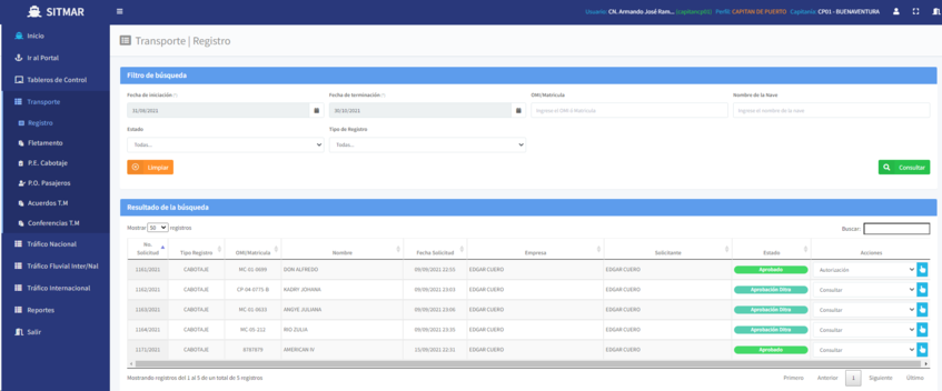 MANUAL DE USUARIO SISTEMA INTEGRADO DE TRÁFICO Y TRANSPORTE MARITIMO (SITMAR)